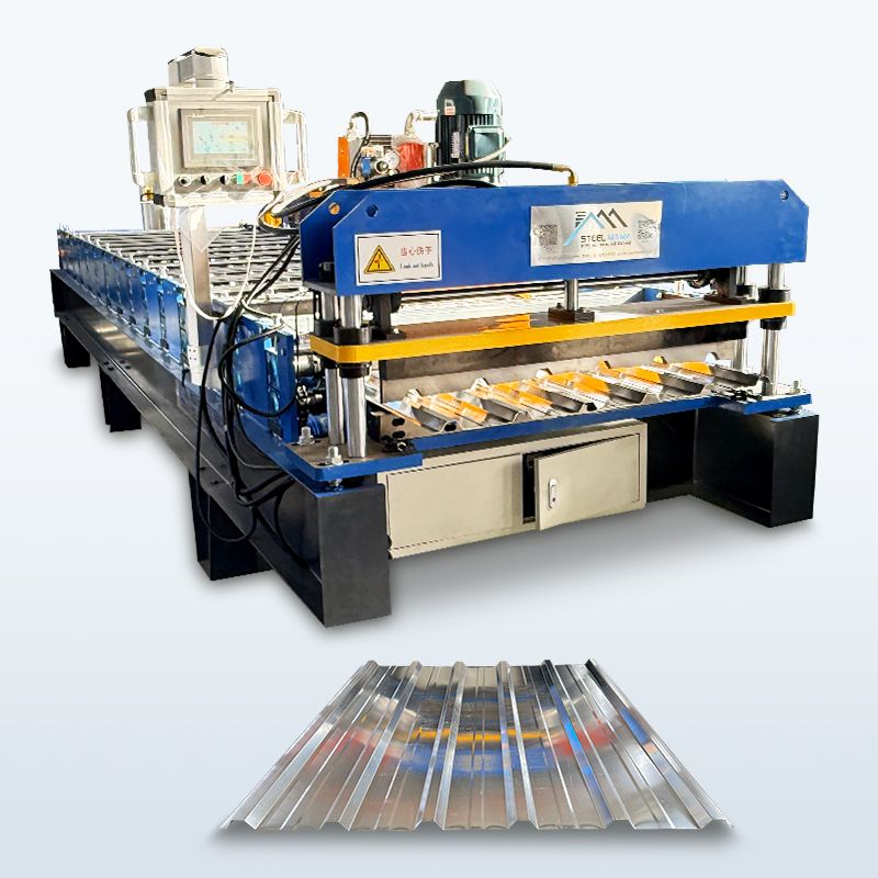 Steelmama diseña y construye máquinas de formación de láminas trapezoidales personalizadas. Por ejemplo, algunos clientes solicitan una máquina de formación de láminas de techo de metal, algunos clientes pueden preferir una estructura de formación separada estructura trapezoidal láminas de rollo de formación de láminas, o algunos clientes pueden necesitar protector de seguridad en el cuerpo de la máquina de formación de rollo, etc.